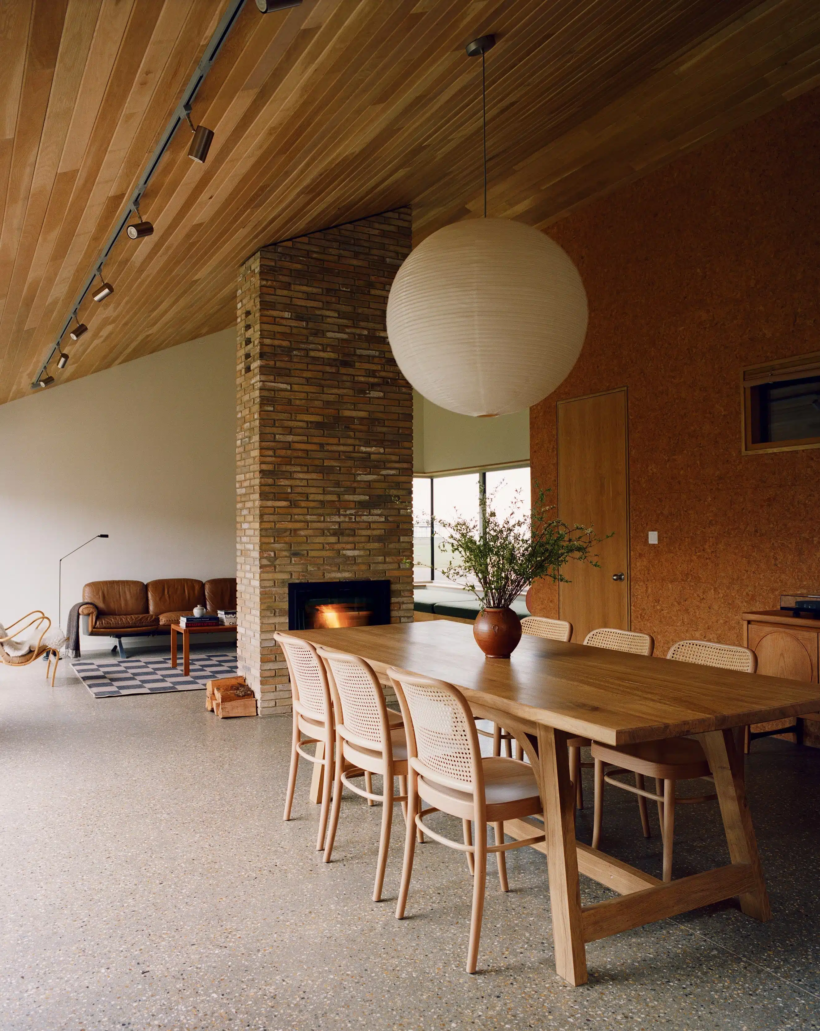 150 m2 of our iconic diamond polished flooring completes an innovative palette of rich timbers, natural cork, contemporary brick and utilitarian steel, referencing the bungalow’s 1950s roots and reflecting the natural surroundings.