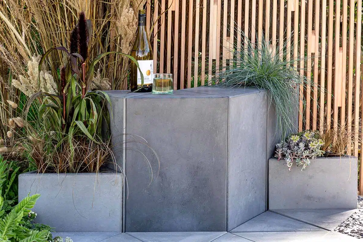All the concrete tiles, stools & planters were cast in the Lazenby manufacturing centre in Yeovil. After four to five weeks testing, it took around two weeks to complete the samples for the shoot.