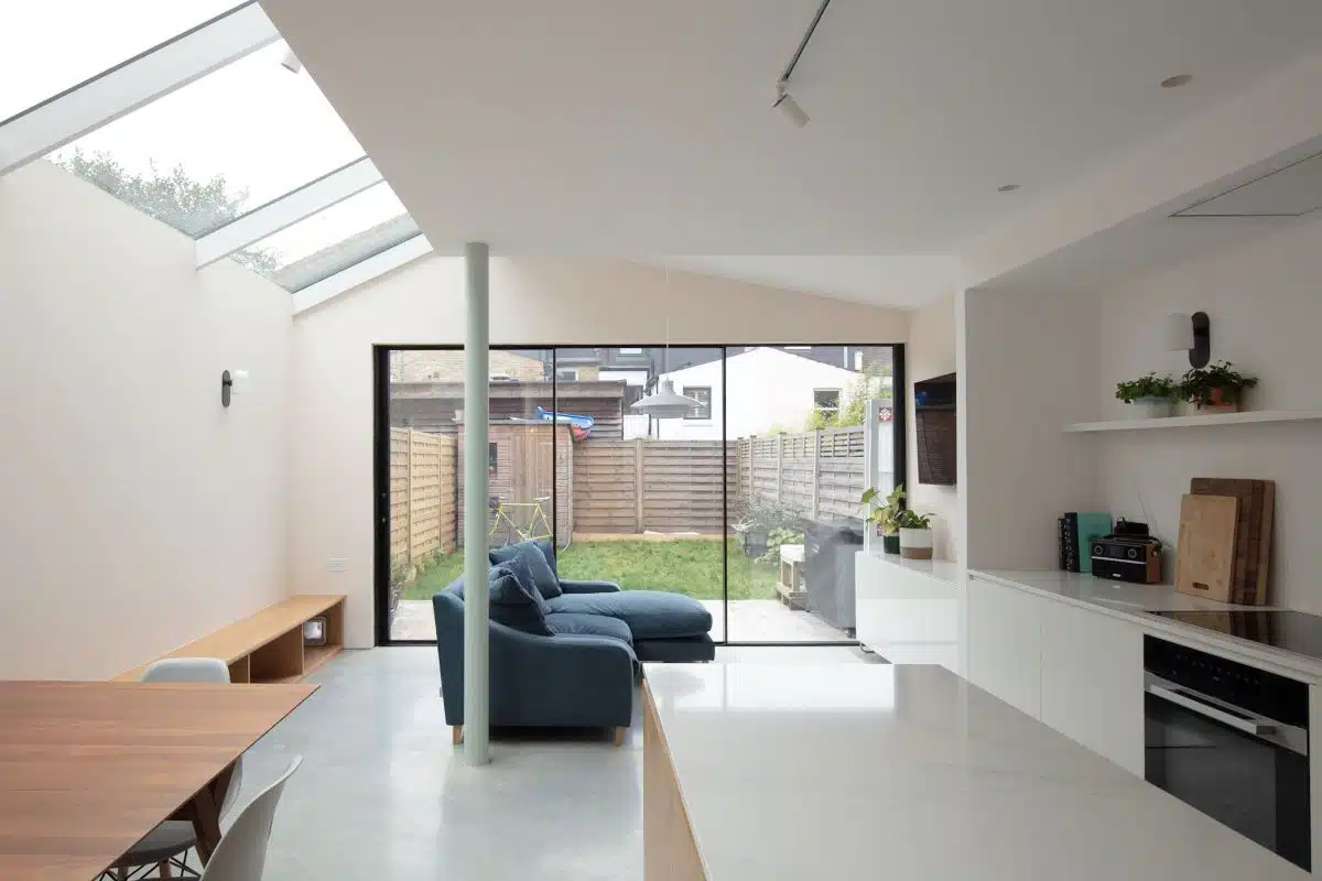 Our polished concrete is the bridge between old and new in this gorgeous East Dulwich home. Four polished concrete steps lead from the original reception rooms, through a deep oak portal, and into the brand new kitchen.