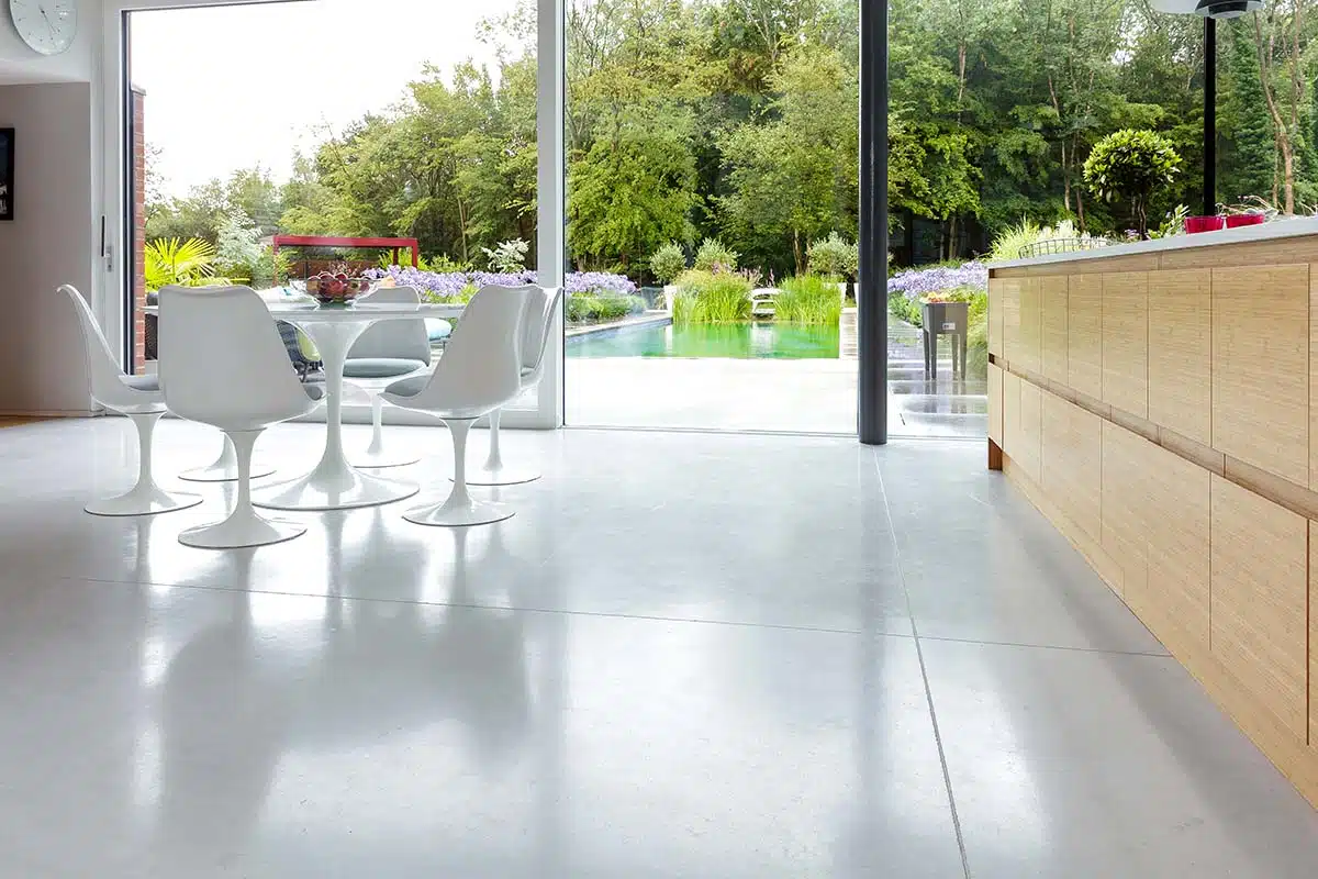 Polished concrete was also used on the external patio and pool surround. This was all laid by hand and acid washed to create a textured, anti slip finish.